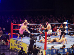 Jr BATTLE OF GLORYの前哨戦8人タッグ。ついに近藤修司が全日本に。岩本が突っかかる。試合後も大荒れ。