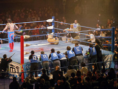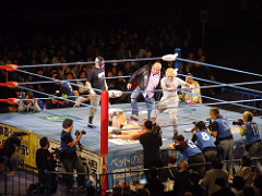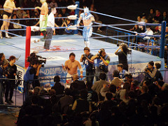 菊地さん、放送席の小橋に執拗に握手を求め断られる。そしてなかなか帰らない。クレイジー。