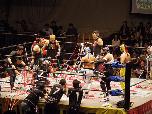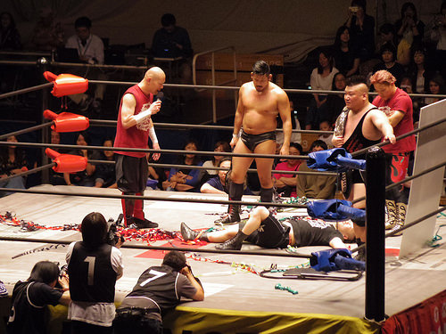 セコンドの佐藤嗣崇が最後の乱闘で流血していたっぽいんだけど…全然気づかなくて。これもリングのど真ん中で派手にやられないと血の流し損ではないのかと。