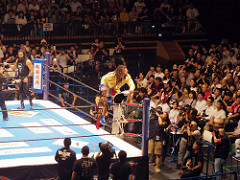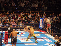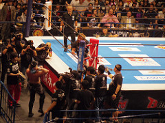 ジェイはあれもできますこれもできますって色々やるんだけど、細かい動きを軽く流しちゃうのと、何よりタイミングが非常に悪い。せっかく盛り上がってきてるのに間を取りすぎてシーンとさせたりとか。全然会場の雰囲気を読めてない。これでヒールとか言われてもって感じであった。ちなみにオカダのコブラクラッチでもシーンとなってたけど…