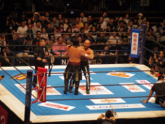 復帰の邪道。体の感じとコスチュームと、最後の頃の天龍っぽいと話をしていたのだが、そもそも腰部脊柱管狭窄症の手術をしたということで、天龍と同じだった。なかなかしんどそうではある…