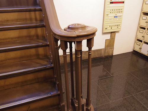 L字型のブロックを組み合わせた独特の工法ということで、説明をしていただいた。